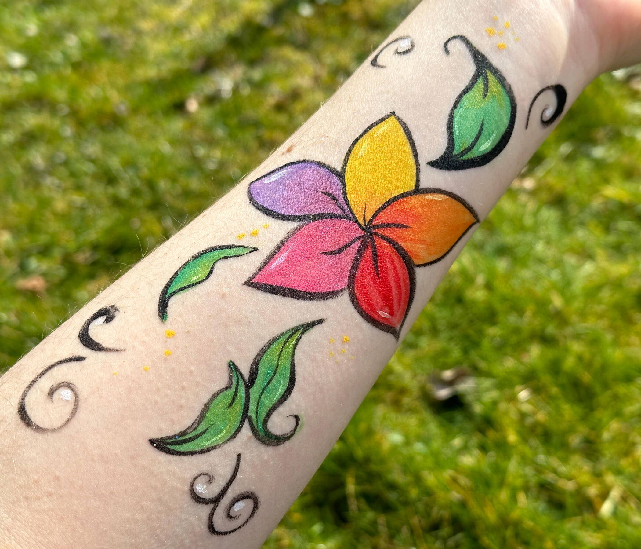 Meine Farben sind hautfreundlich, die Motive anpassbar – für wilde Abenteurer, magische Wesen oder neugierige Tiere.